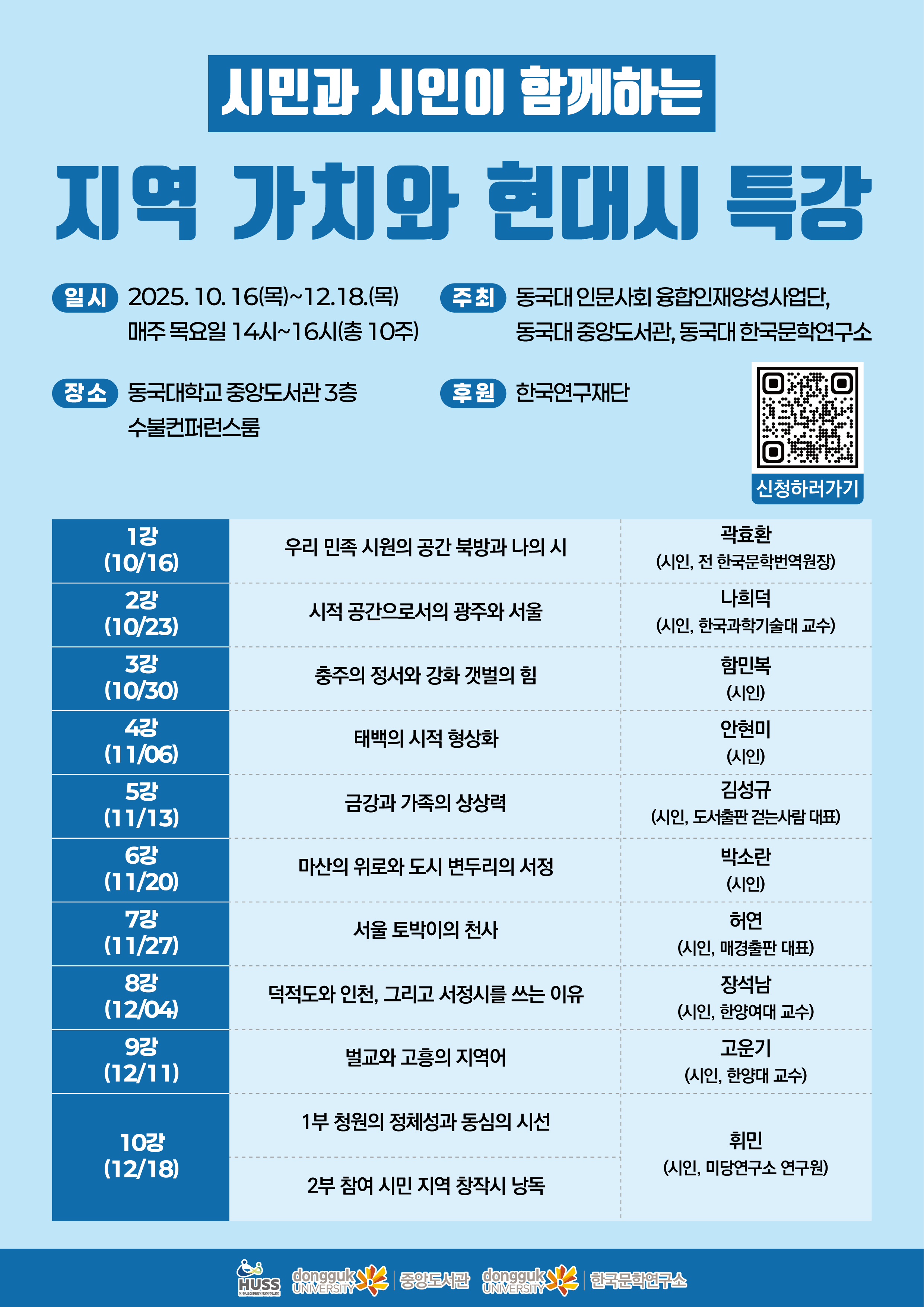 상명 [비교과] [HUSS 인문사회융합인재양성사업단] '시민과 시인이 함께하는 지역 가치와 현대시 특강' 안내 -