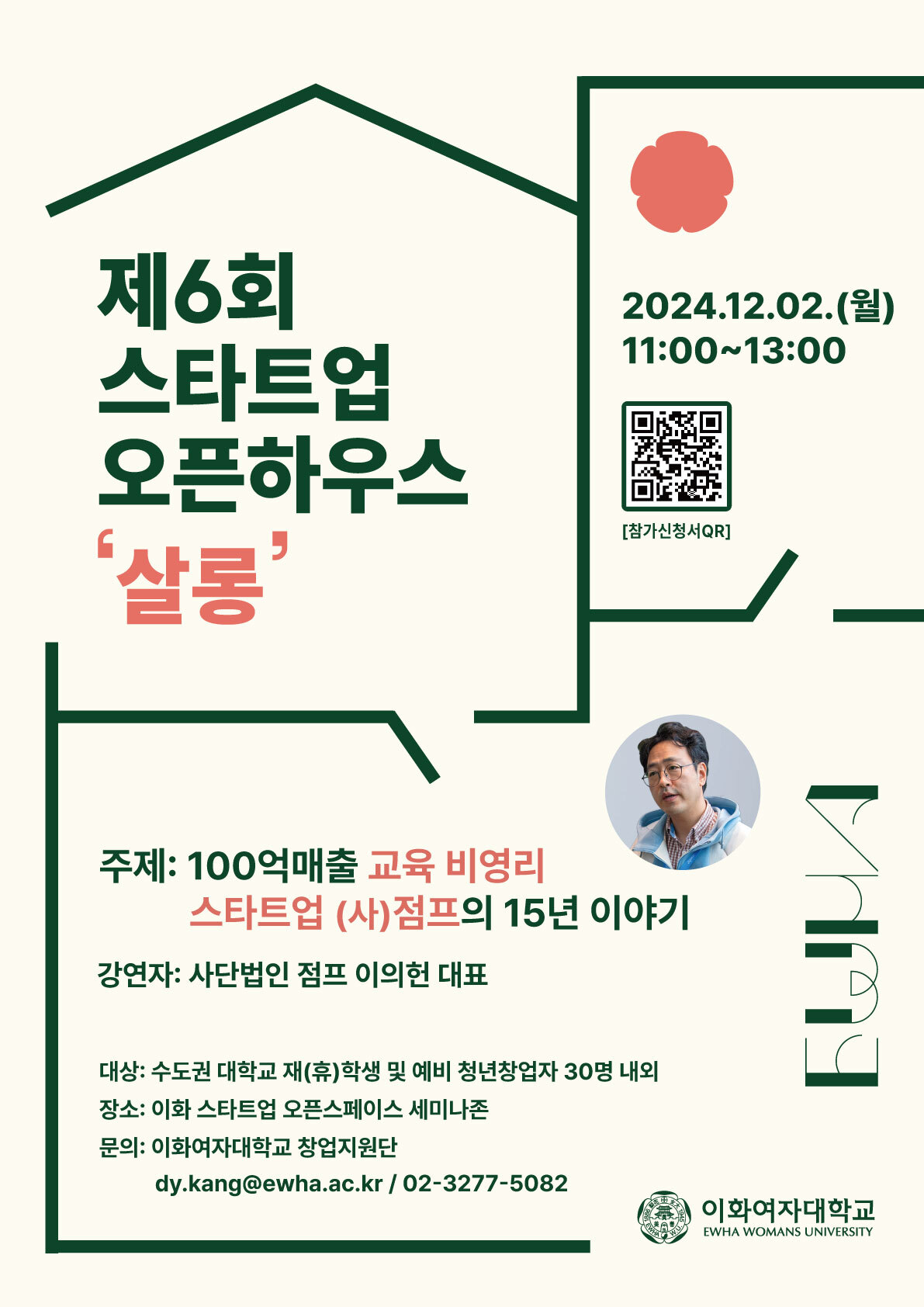 상명 [진로취업] [이화여자대학교 창업지원단] 「2024 제6회 스타트업 오픈 하우스 살롱」 참여 대학(원)생 모집 -