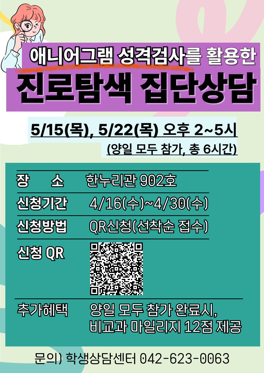 천안 [학생생활] [학생상담센터(천안)] 25-1 <진로탐색 집단상담> 신청 -