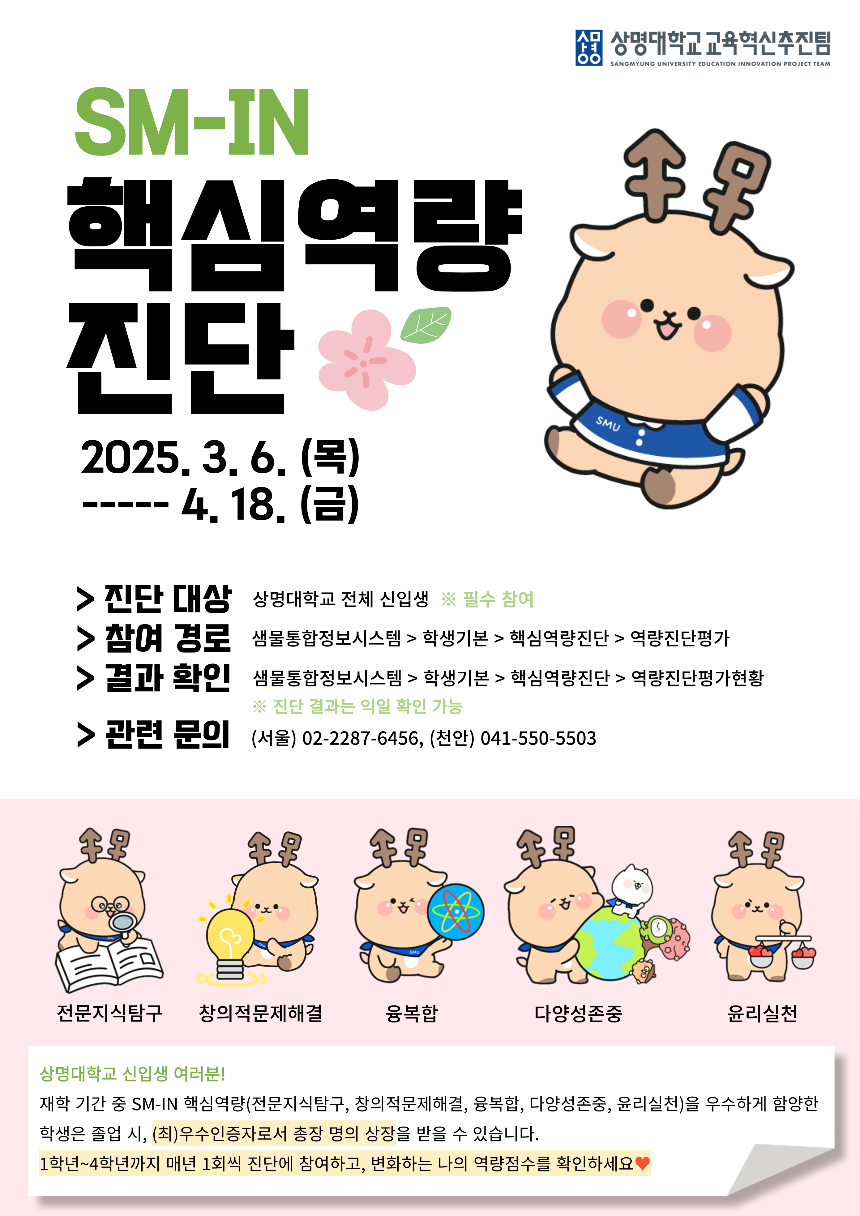 상명 [학생생활] [교육혁신추진팀] 2025학년도 전체 신입생 대상 SM-IN 핵심역량 진단 기간 연장 -