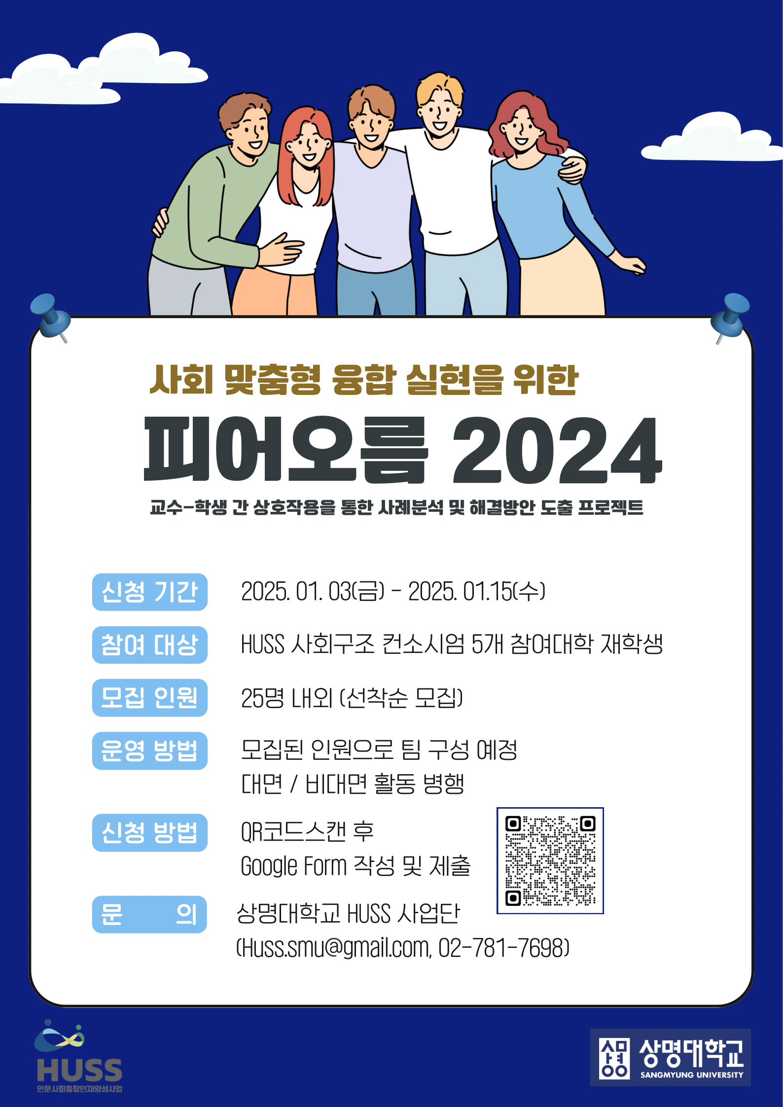 상명 [비교과] [HUSS 인문사회 융합인재양성사업단] 인문사회융합인재양성사업(HUSS) ‘피어오름 2024’ 프로그램 안내 -